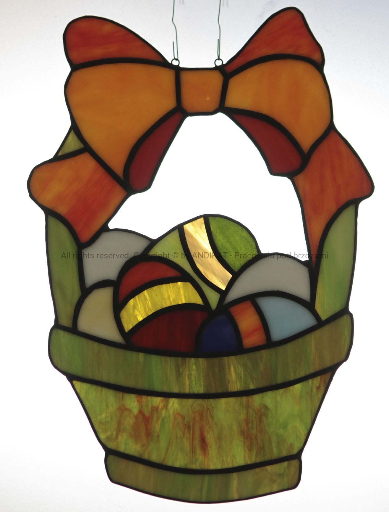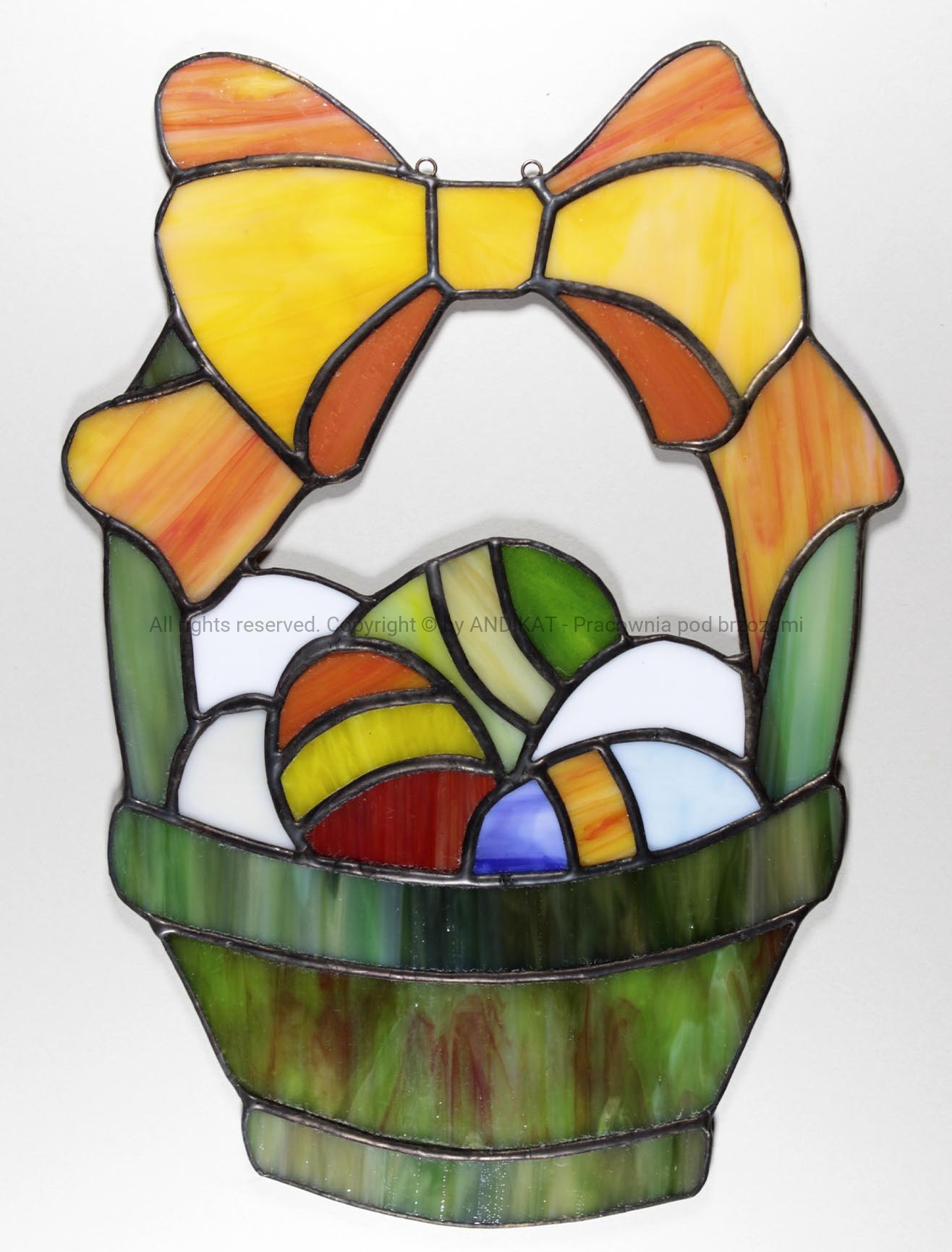 Koszyczek Wielkanocny wykonany z opalowego szkła witrażowego w technice Tiffany.