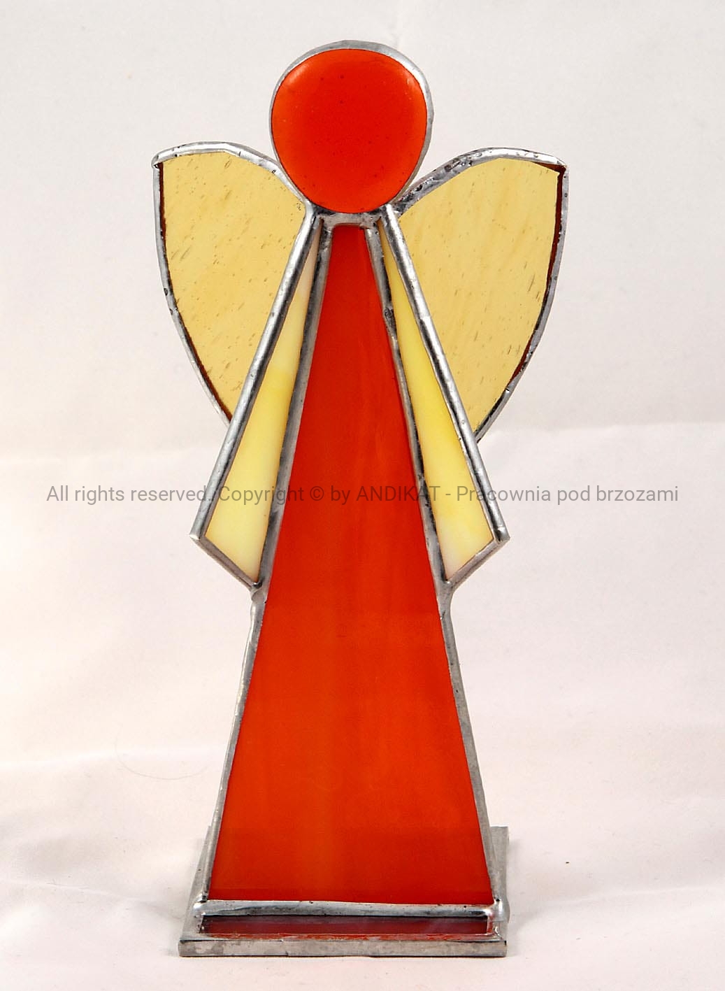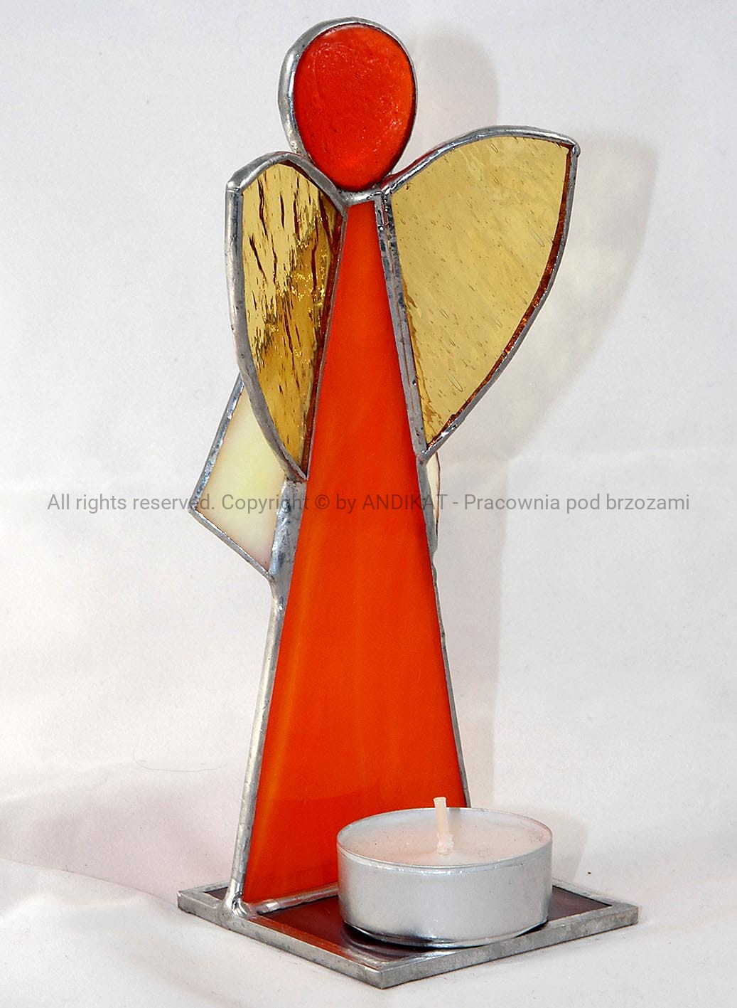 Materiał Szkło witrażowe, cyna, drut miedziany, podstawka szklana
