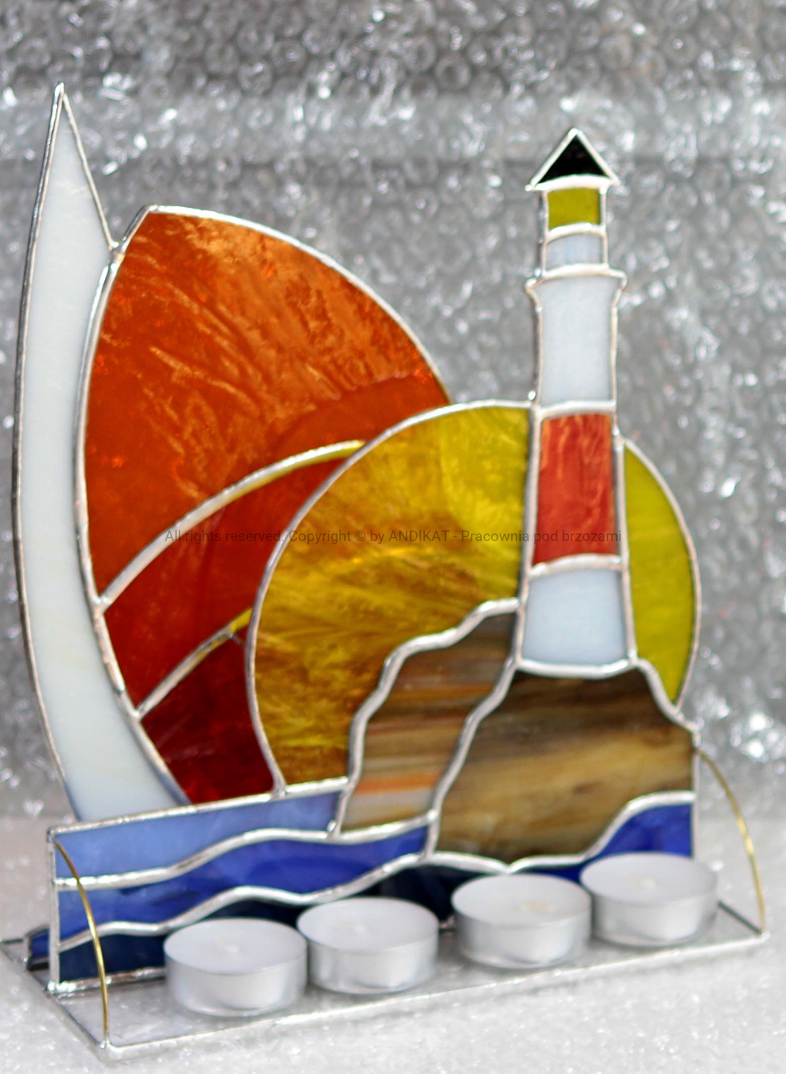 Materiał Szkło witrażowe, cyna, drut miedziany