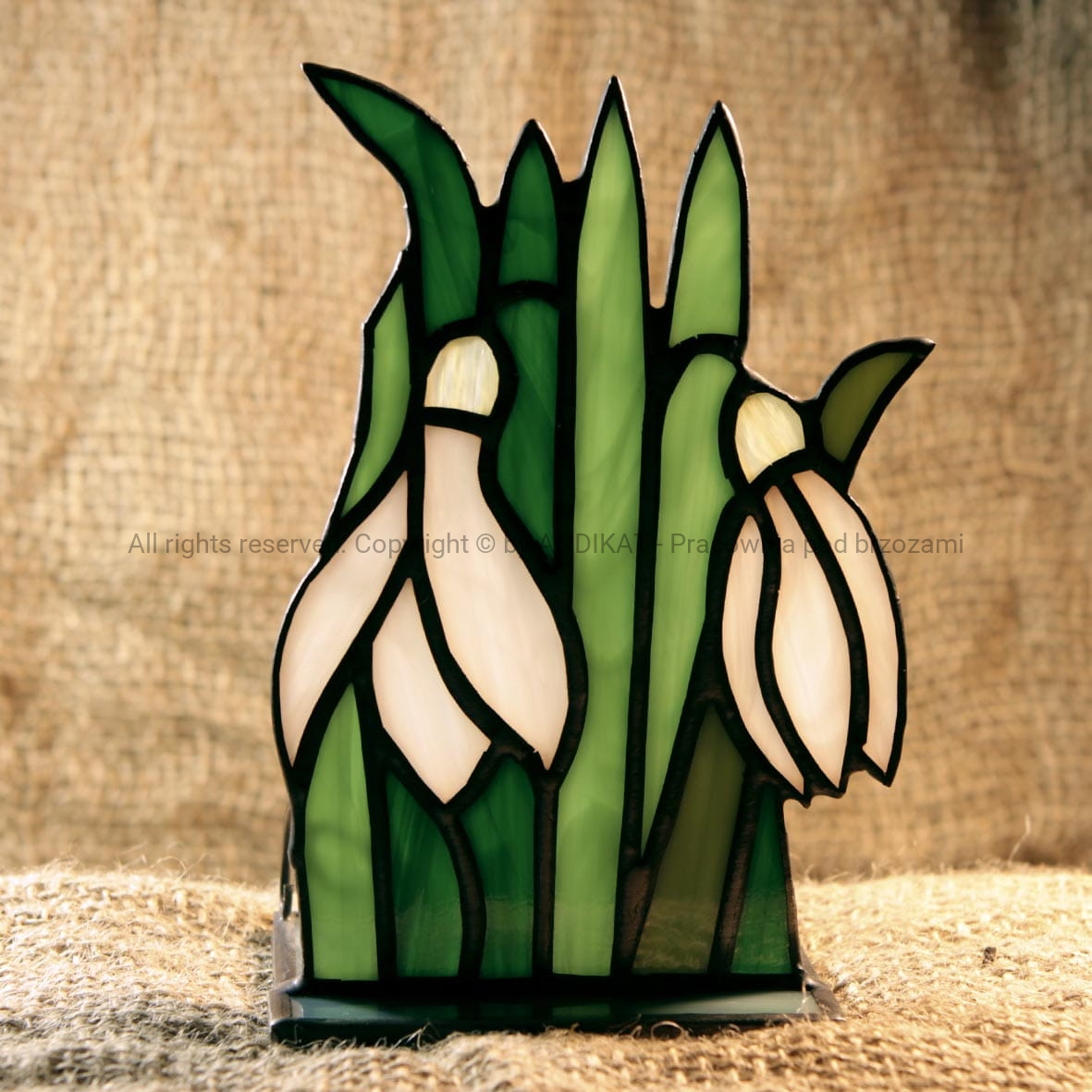 Piękny lampion wykonany z opalowego szkła witrażowego. Ozdobny drobiazg na upominek zalśni wieczorem, gdy zapłonie świeczka. W komplecie jedna świeczka tealight.