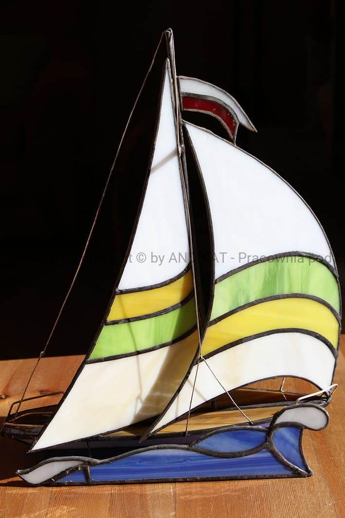 Materiał Szkło witrażowe, cyna, drut miedziany, podstawka szklana