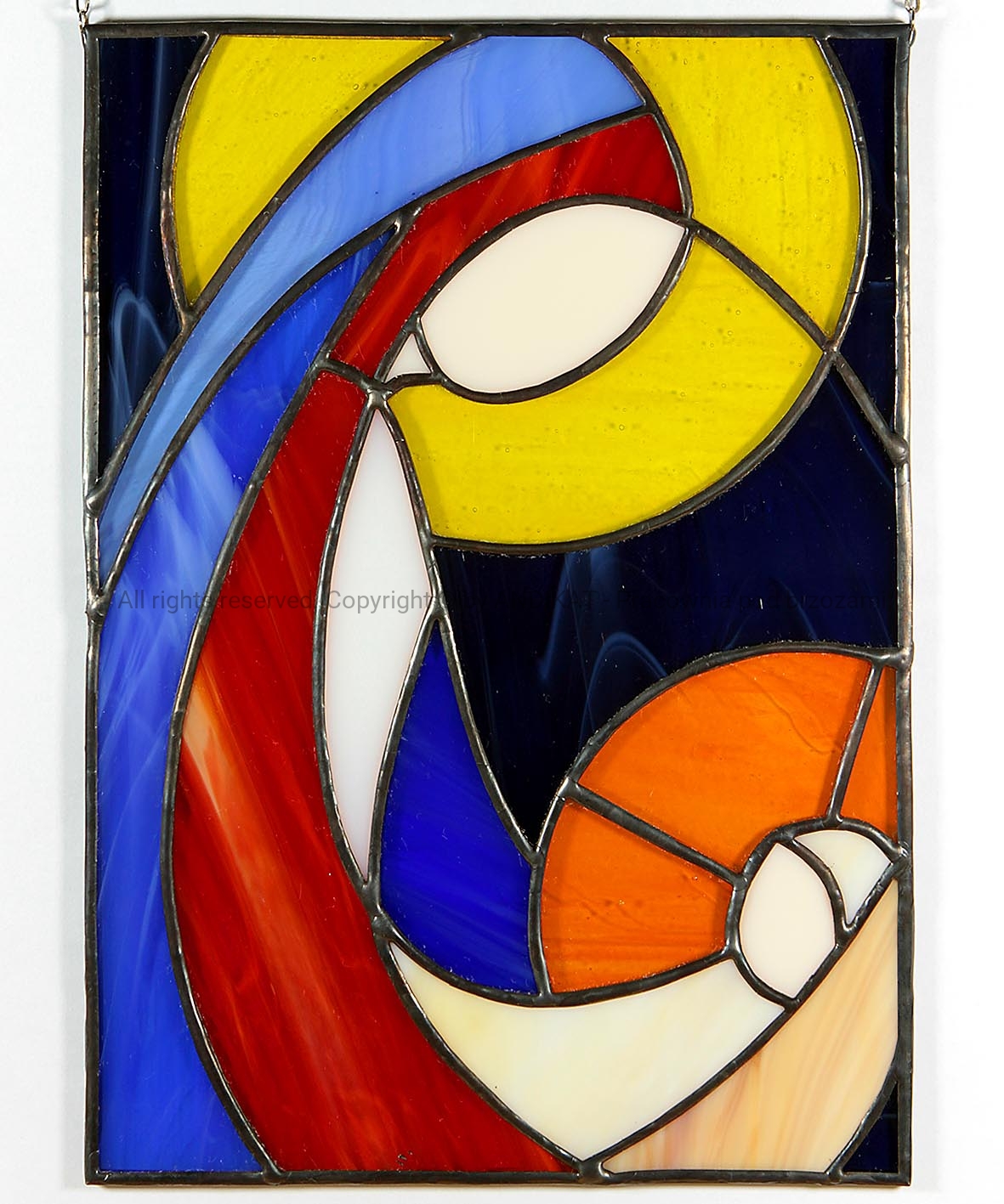 Witraż przedstawiający Matkę Bożą z Dzieciątkiem Jezus.