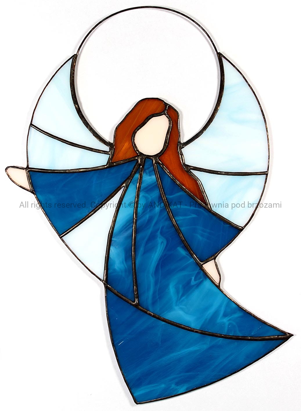 Witraż - Anioł Stróż radości - turkusowy