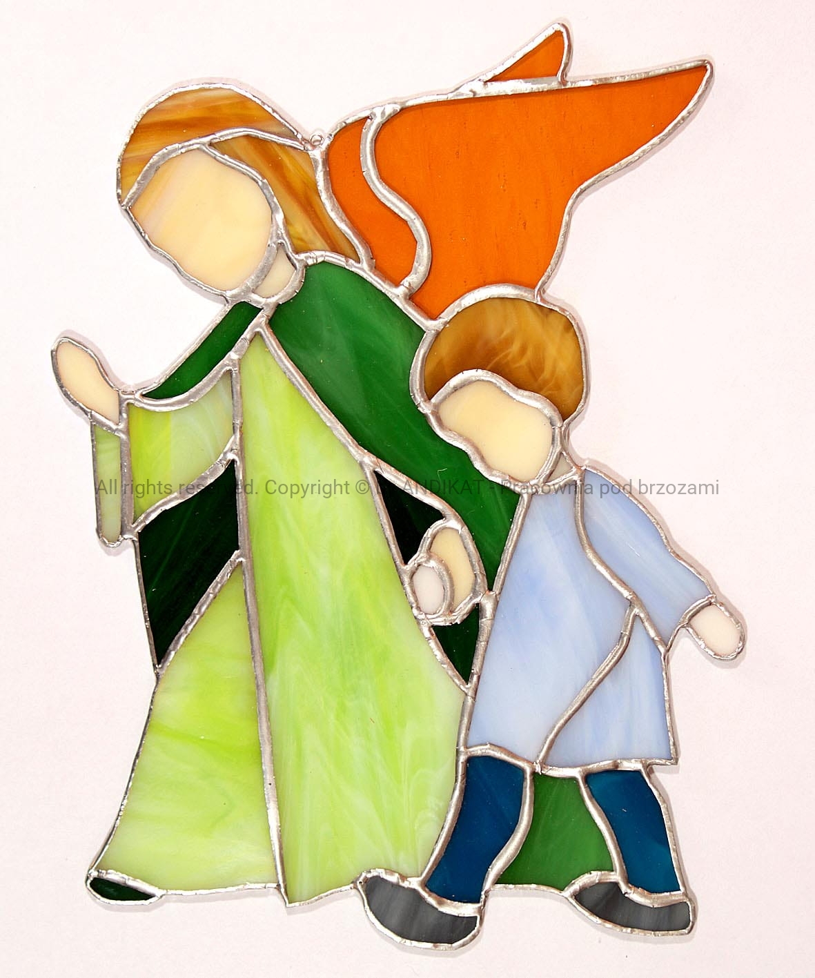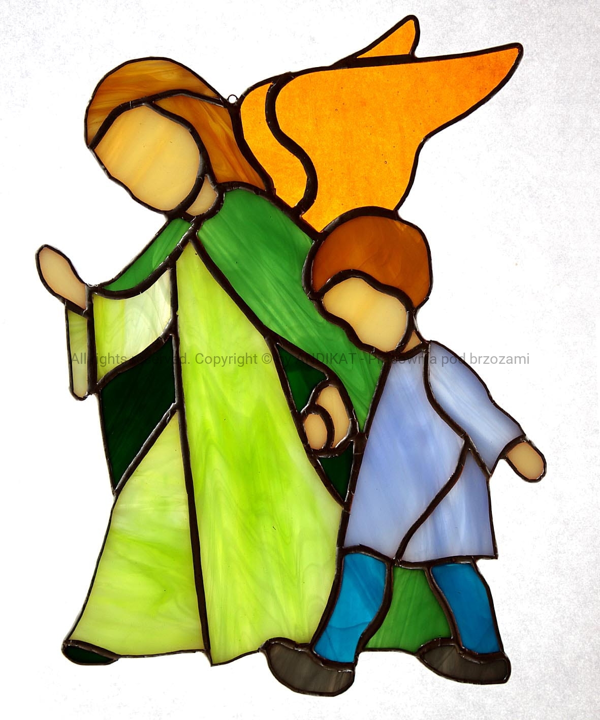 Anioł Stróż jest opiekunem ludzi na ziemi. Od początku towarzyszy Ci w codziennej wędrówce, czuwa nad Tobą nocą. Może często o Nim nie pamiętasz. Może dlatego nie zdajesz sobie sprawy jak wiele Mu zawdzięczasz. Taki witraż na oknie przypomni Ci o Nim... i ładnie rozświetli pokój.