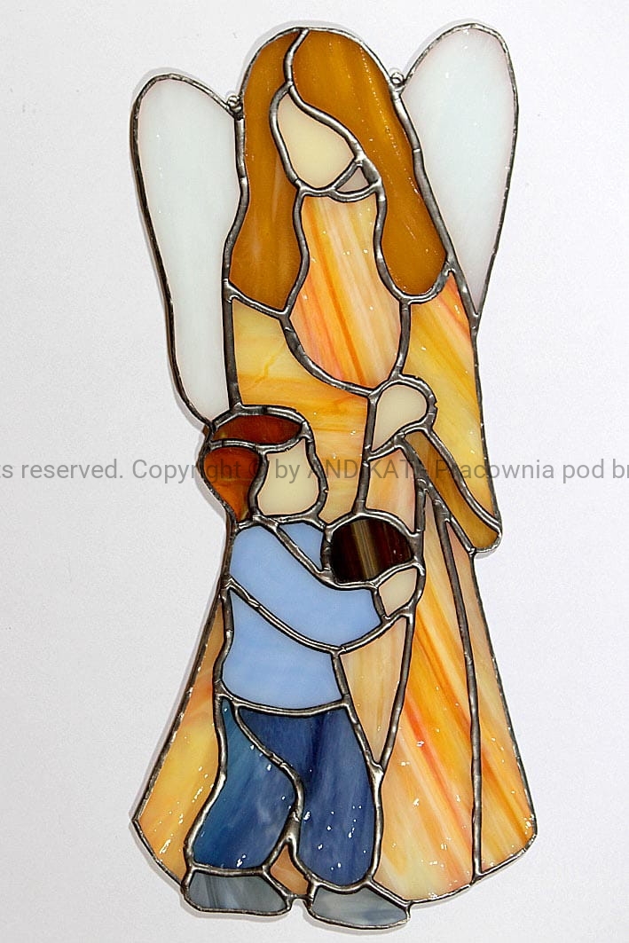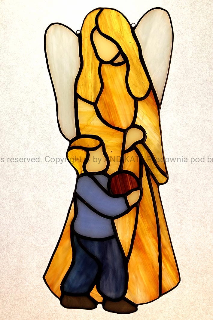Anioł Stróż jest opiekunem ludzi na ziemi. Od początku towarzyszy Ci w codziennej wędrówce, czuwa nad Tobą nocą. Może często o Nim nie pamiętasz. Może dlatego nie zdajesz sobie sprawy jak wiele Mu zawdzięczasz. Taki witraż na oknie przypomni Ci o Nim... i ładnie rozświetli pokój.