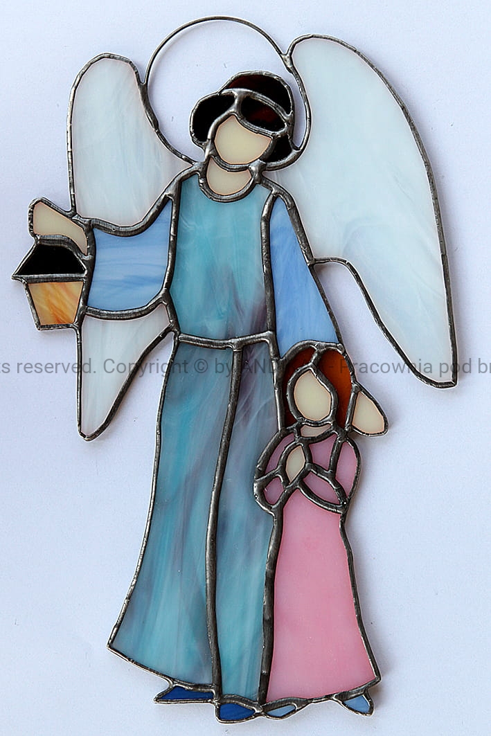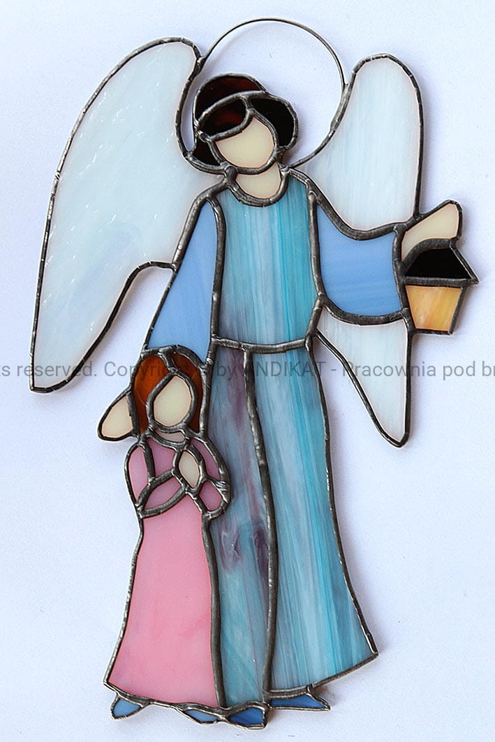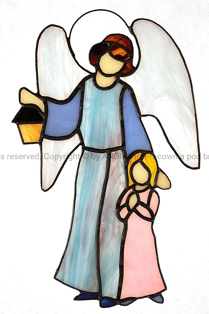 Anioł Stróż jest opiekunem ludzi na ziemi. Od początku towarzyszy Ci w codziennej wędrówce, czuwa nad Tobą nocą. Może często o Nim nie pamiętasz. Może dlatego nie zdajesz sobie sprawy jak wiele Mu zawdzięczasz. Taki witraż na oknie przypomni Ci o Nim... i ładnie rozświetli pokój.