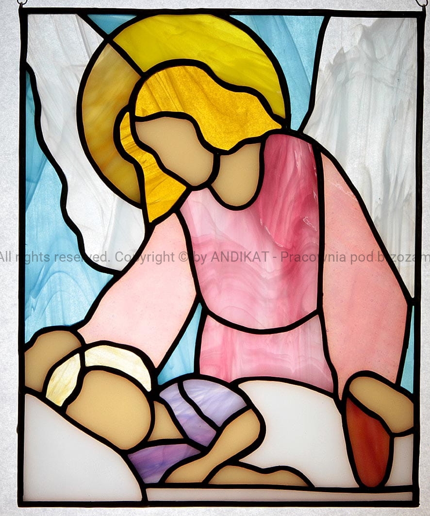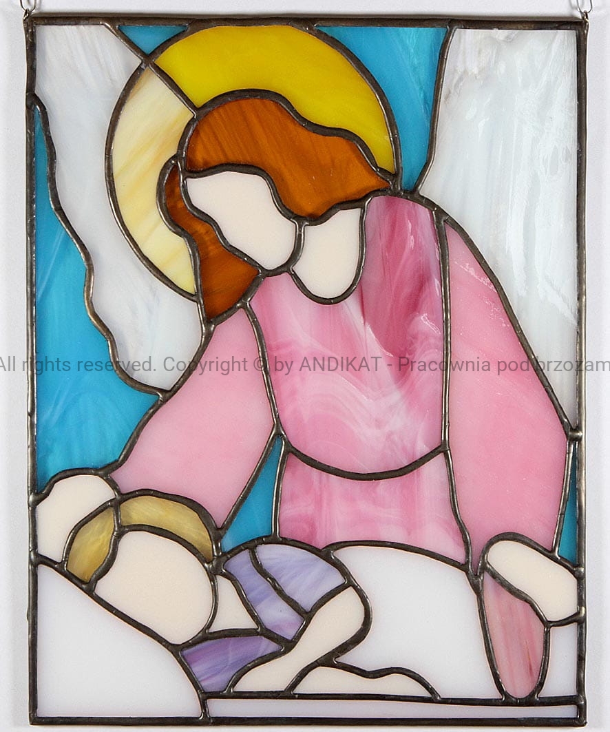 Anioł Stróż jest opiekunem ludzi na ziemi. Od początku towarzyszy każdemu z nas (czy chcemy tego, czy nie) w codziennej wędrówce, czuwa nad nami w dzień i nocą. Taki witraż na oknie przypomni Ci o Nim... i ładnie rozświetli pokój. Uroczy prezent i piękna ozdoba pokoju dziecka.
