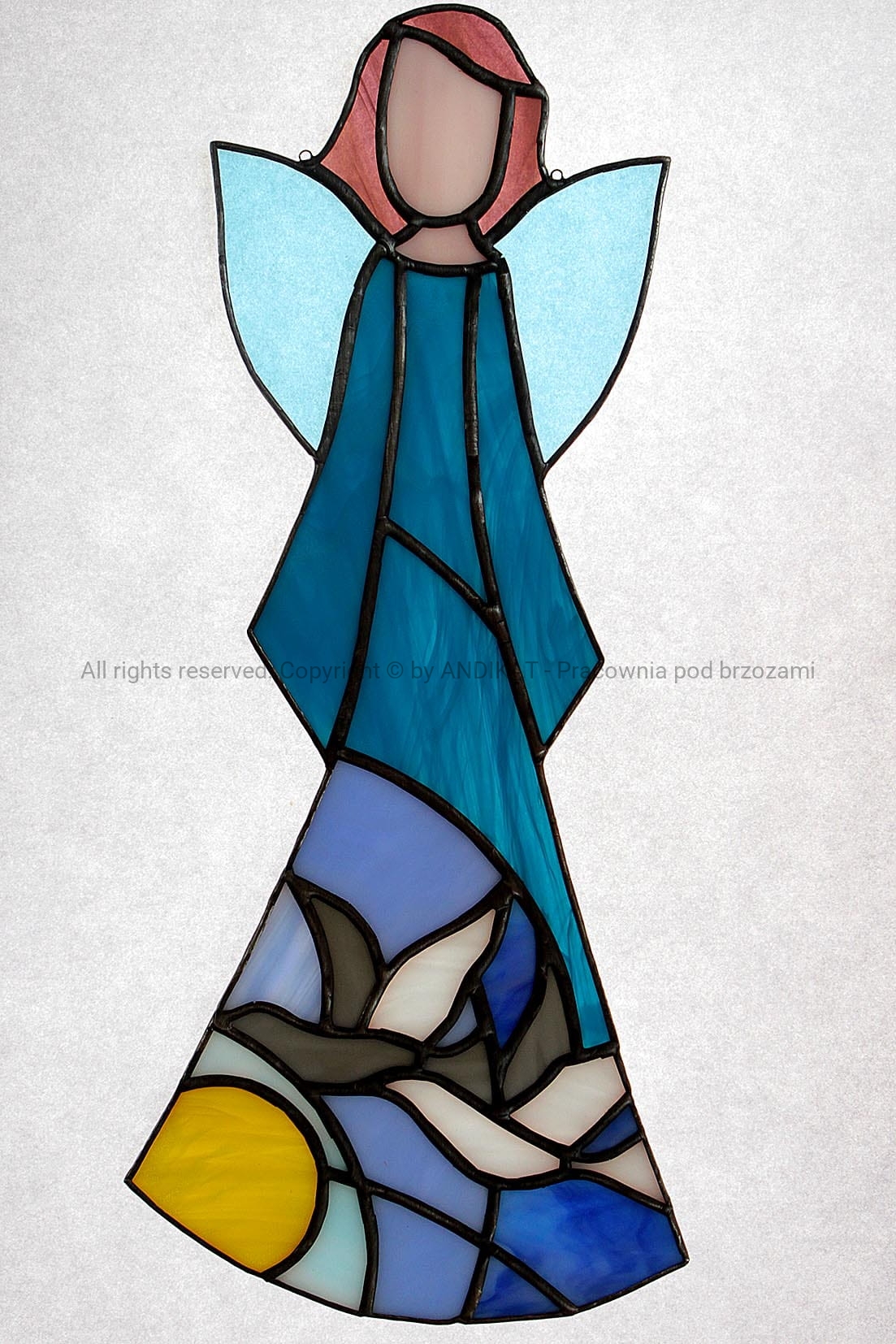 Oryginalny witraż troskliwego Anioła.