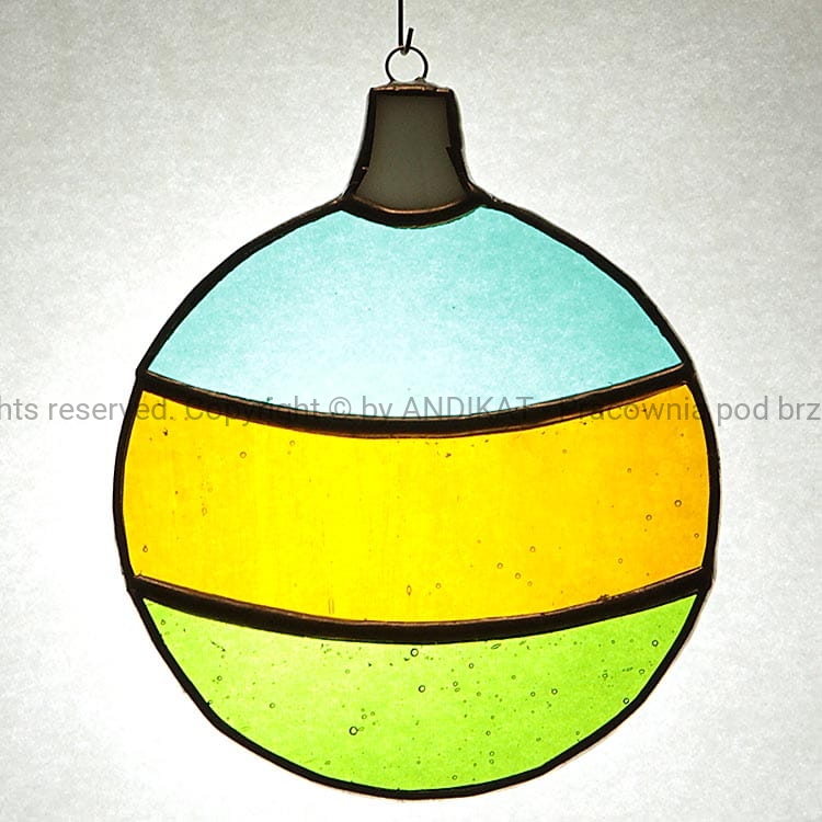 Bańka lub bombka choinkowa wykonana w technice tiffany z katedralnego szkła witrażowego.