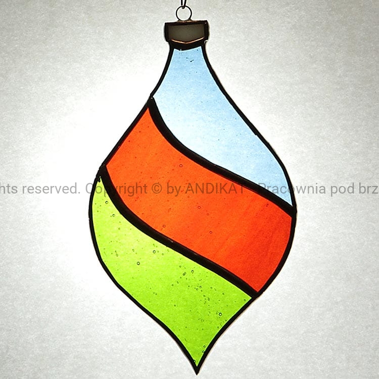 Bańka lub bombka choinkowa wykonana w technice tiffany z katedralnego szkła witrażowego.