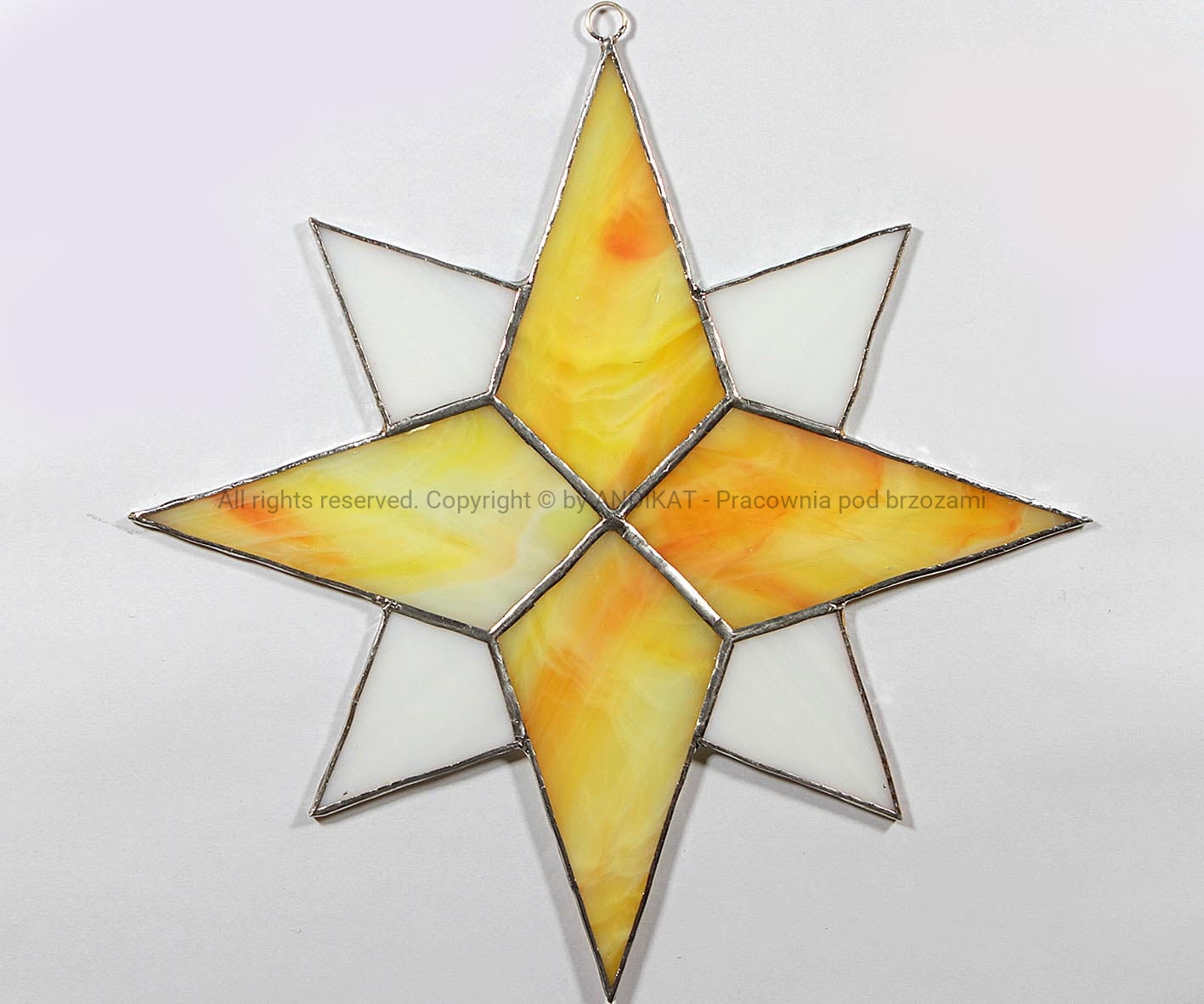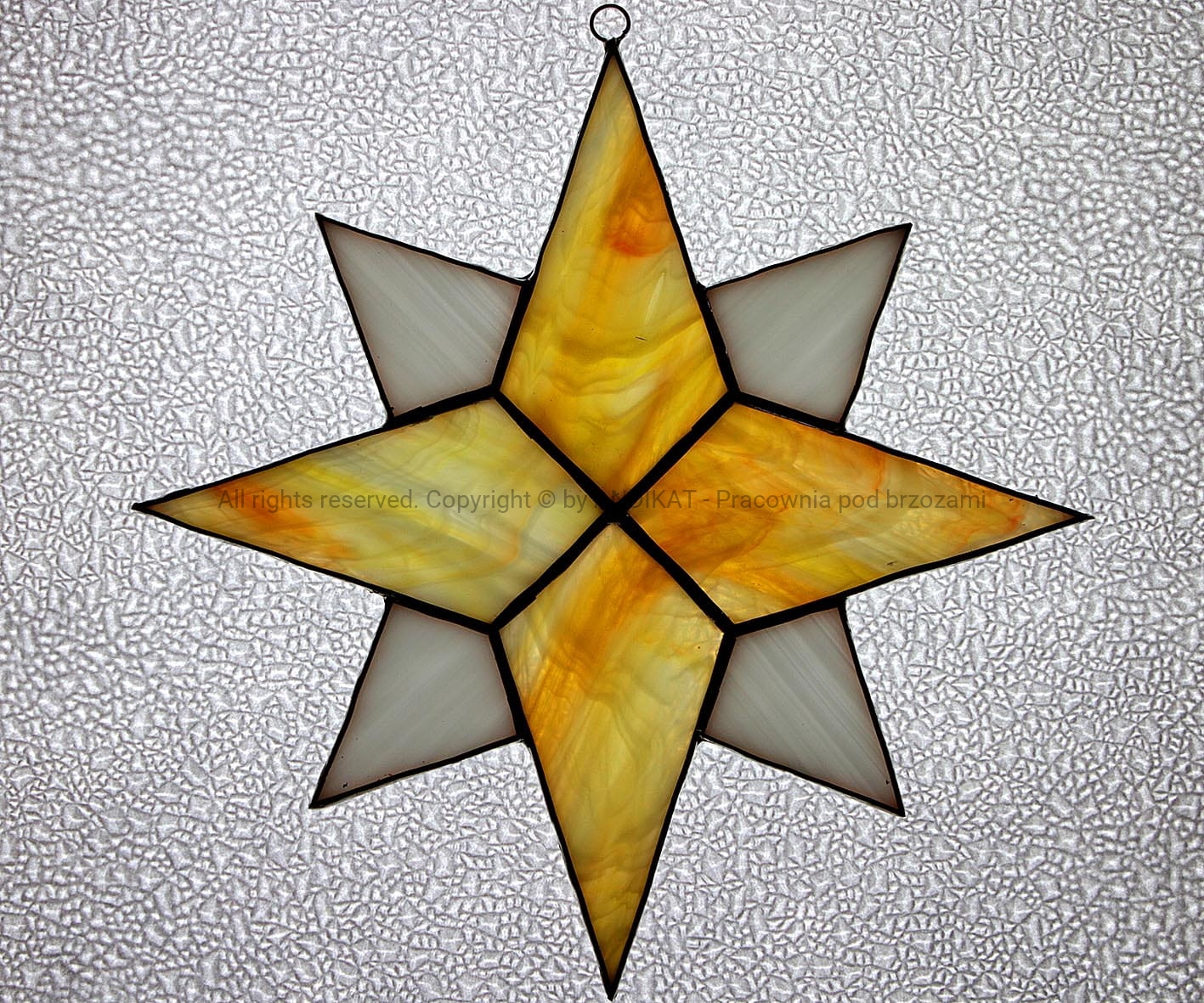Gwiazda betlejemska wykonana w technice tiffany z opalowego szkła witrażowego.