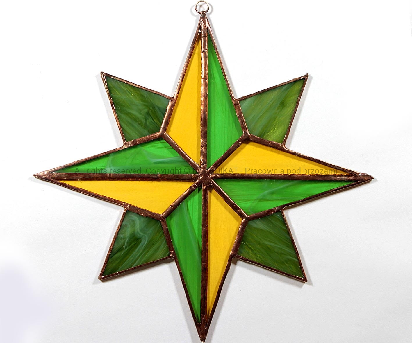 Gwiazda betlejemska wykonana w technice tiffany z opalowego szkła witrażowego. Pięknie prezentuje się zawieszona w oknie.