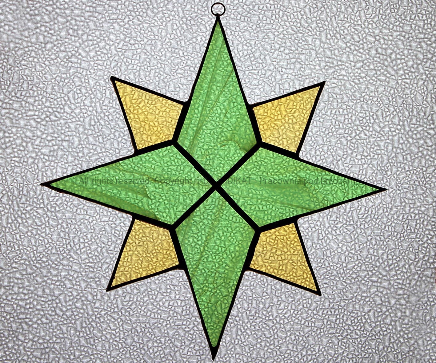 Gwiazda betlejemska wykonana w technice tiffany z opalowego szkła witrażowego.
