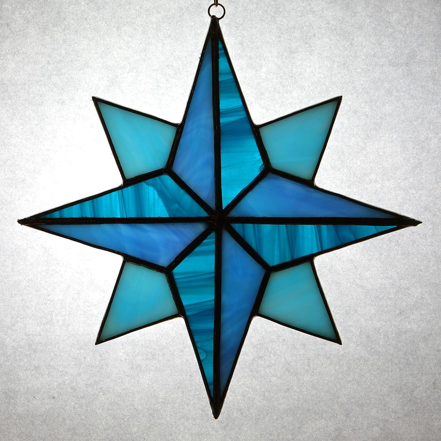 Gwiazda betlejemska wykonana w technice tiffany z opalowego szkła witrażowego.