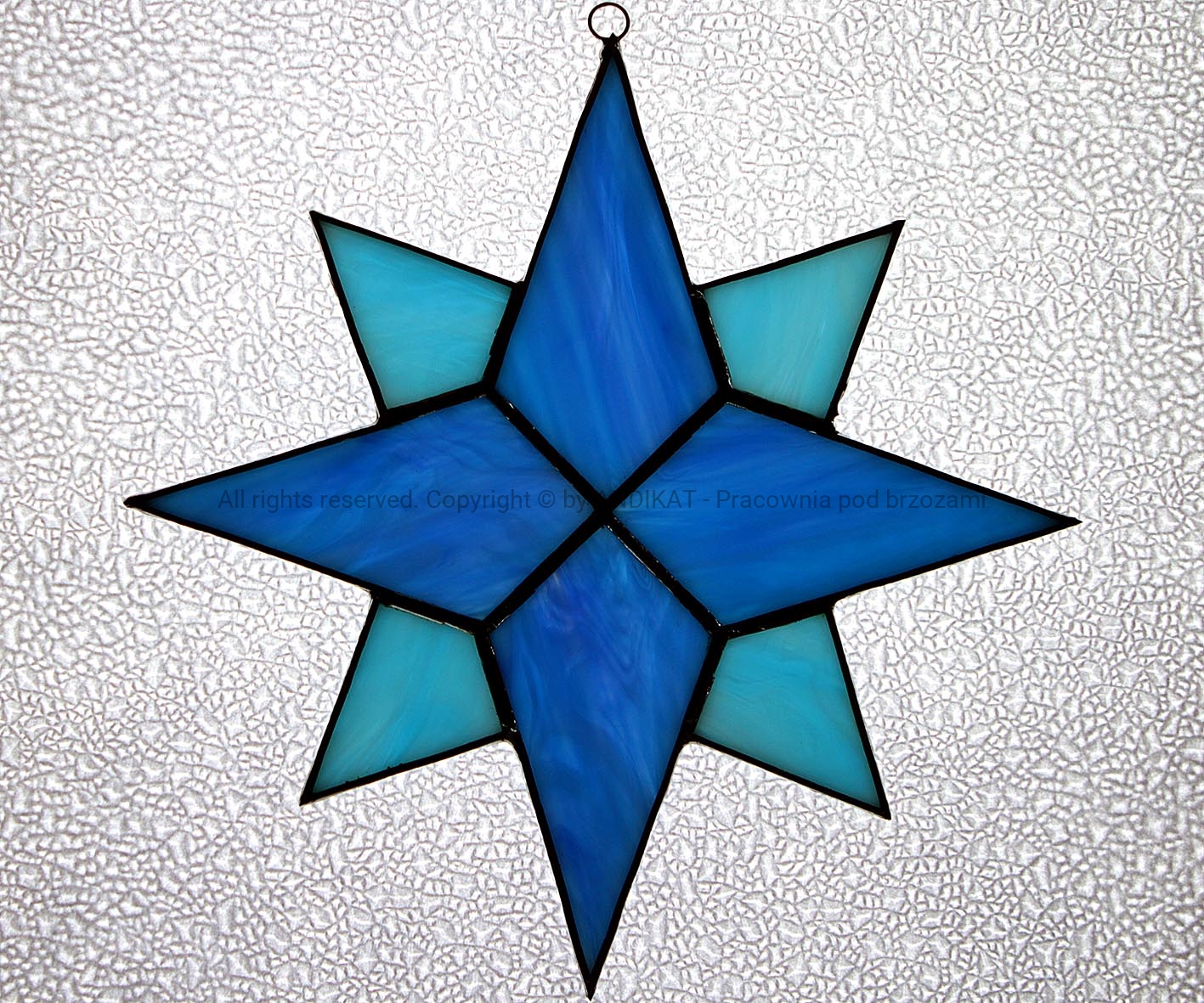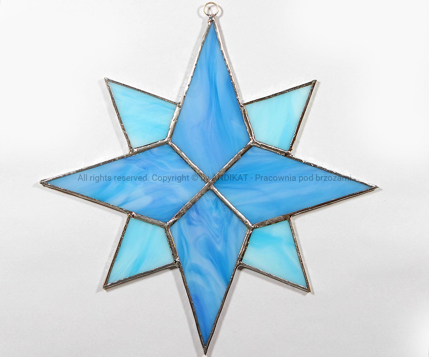 Gwiazda betlejemska wykonana w technice tiffany z opalowego szkła witrażowego.