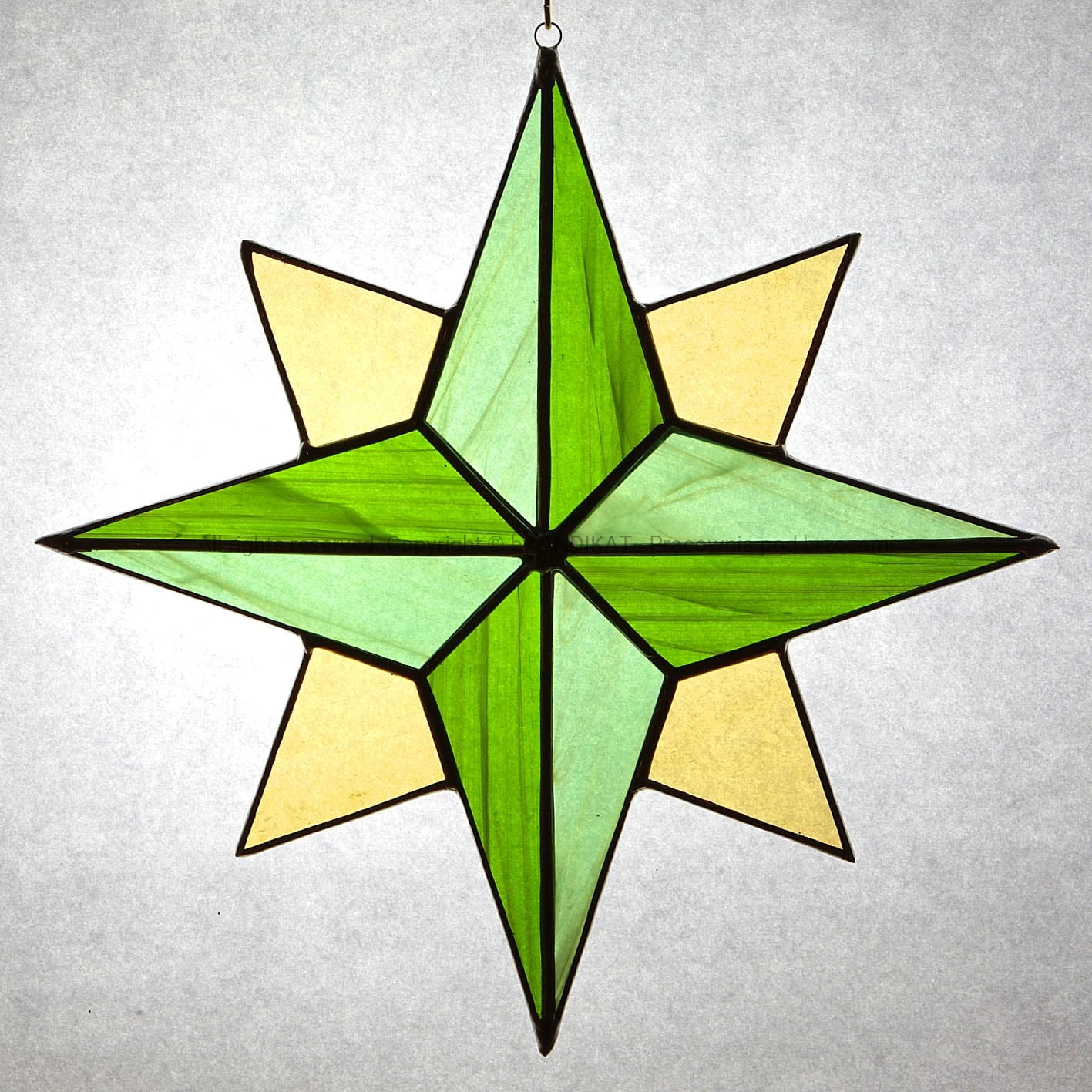 Gwiazda betlejemska wykonana w technice tiffany z opalowego szkła witrażowego.