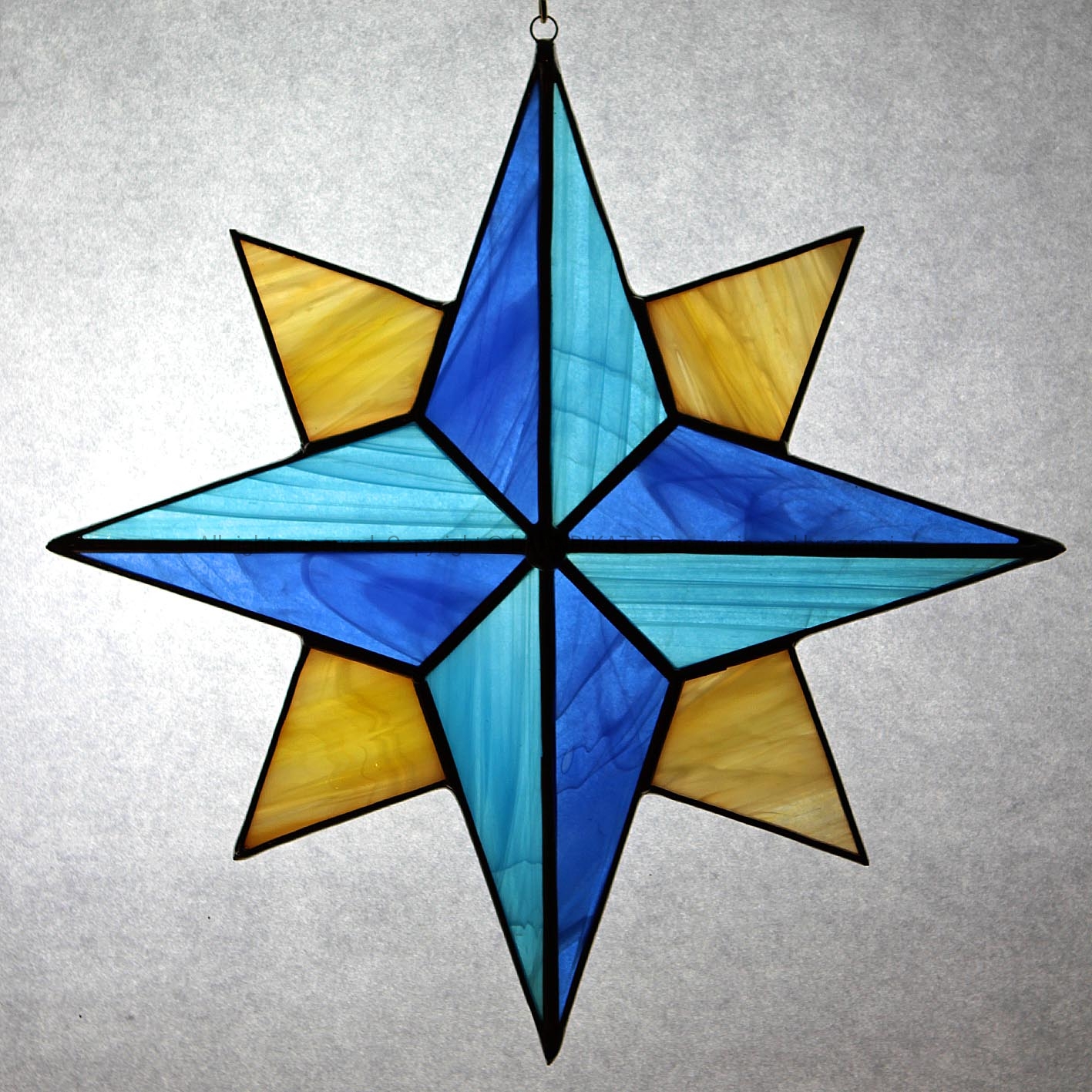 Gwiazda betlejemska wykonana w technice tiffany z opalowego szkła witrażowego. Pięknie prezentuje się zawieszona w oknie.