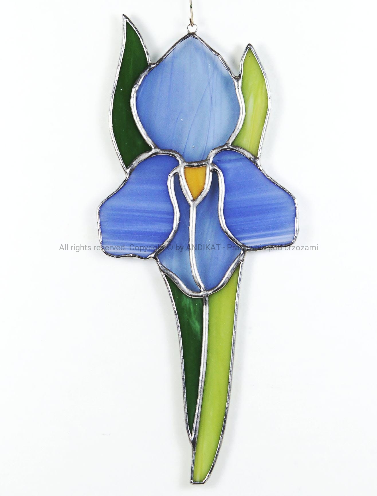 W języku kwiatów irys jest symbolem miłości i zaufania. Ta urocza, wiosenna roślina, doda barwy wnętrzu, gdy zawieszona w oknie, uchwyci promyki słońca. Witraż wykonany w technice Tiffany ze szkła opalowego.