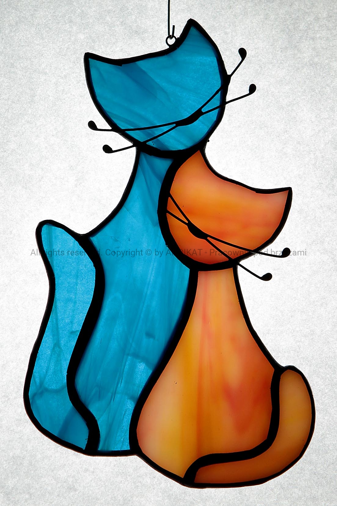 Ta, czule tuląca się para kotów, doda barwy wnętrzu, gdy zawieszony w oknie, uchwyci promyk światła.
