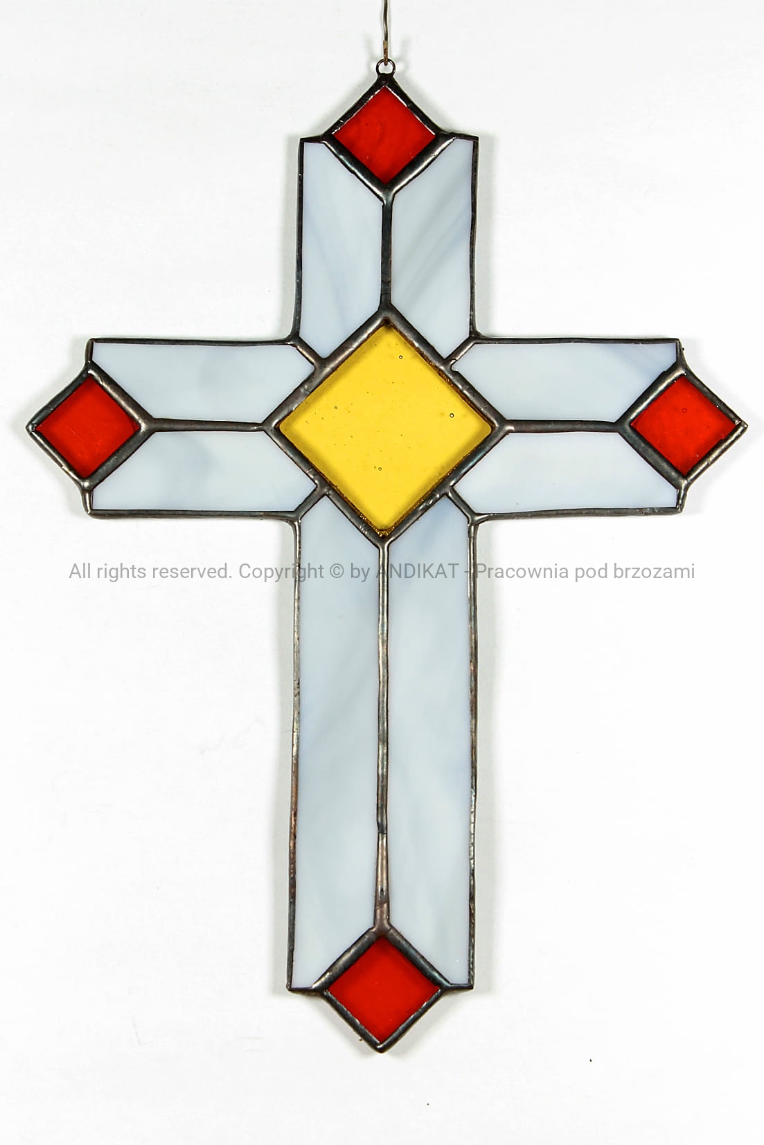 Wykonany ze szkła opalowego firmy Spectrum w technice Tiffany.
