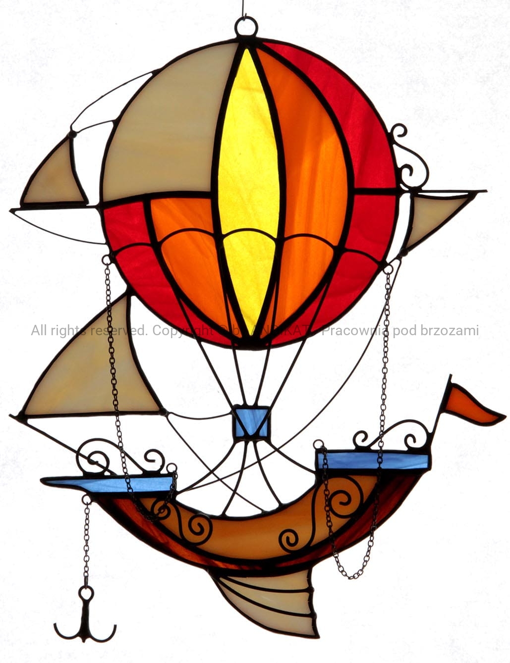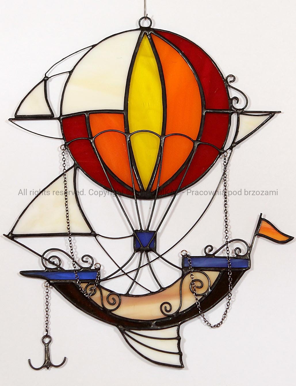Łapacze snów pochodzą z tradycji i wierzeń niektórych plemion indiańskich w Ameryce Północnej. Wieszane nad posłaniem lub u wejścia miały chronić przed koszmarami i złymi snami, a przyciągać i zsyłać dobre sny. Wykonywane były z drewnianych patyków, włosia ścięgien lub skóry. Ten łapacz wykonany jest z opalowego i katedralnego szkła witrażowego w technice tiffany. Fantastyczny i bajkowy zamysł "przywołuje" bajkowe i fantazyjne sny. Na zamówienie można uzgodnić kolorystykę szkła.