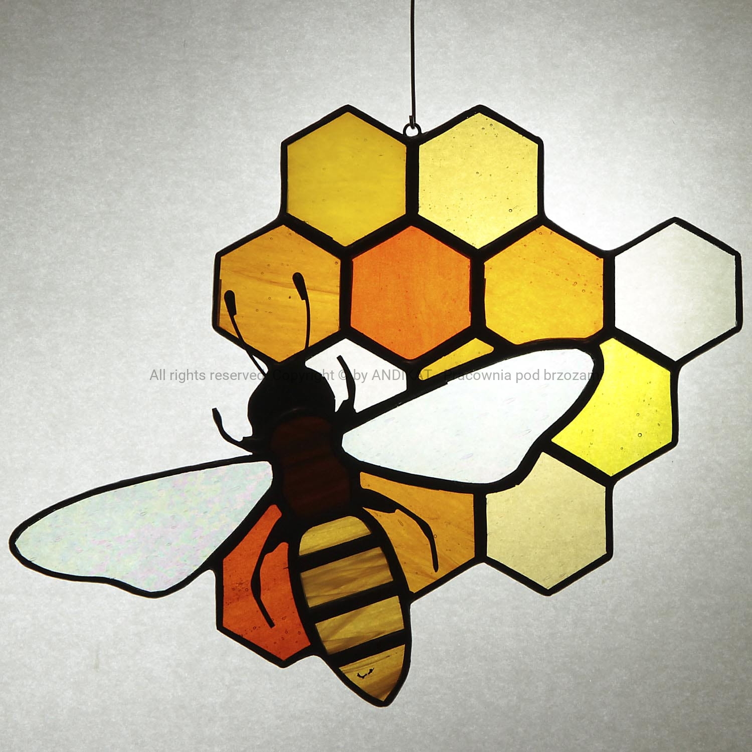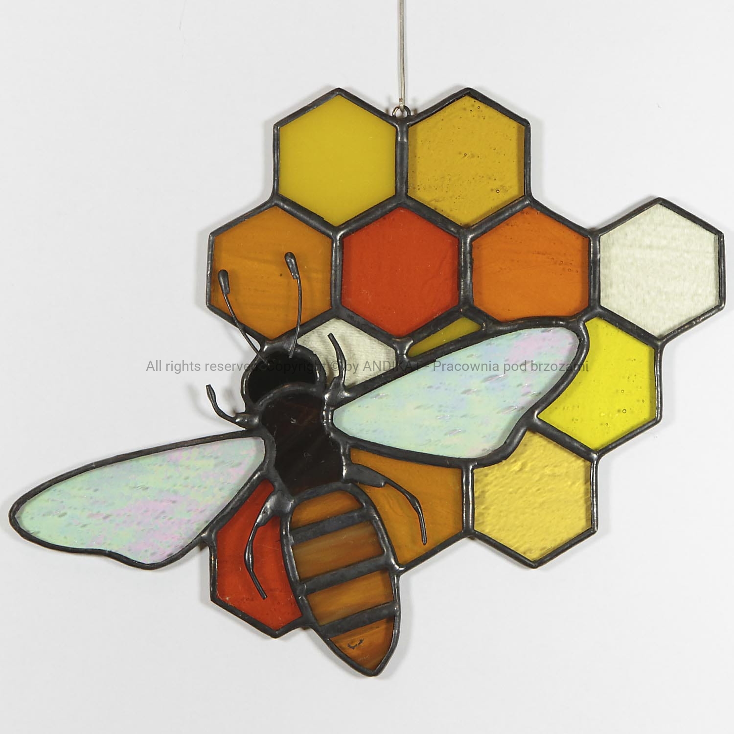 Plaster miodu jest cudem natury wykonanym przez pszczoły. Sześciokątny kształt komórek plastra pozwala pomieścić w nich maksymalną ilość miodu przy minimalnym zużyciu wosku. Pracowita pszczoła uwija się by napełnić go bezcennym miodem. Ten witraż doda barwy wnętrzu, gdy zawieszony w oknie, uchwyci promyk światła. Witraż wykonany w technice Tiffany ze szkła opalowego.