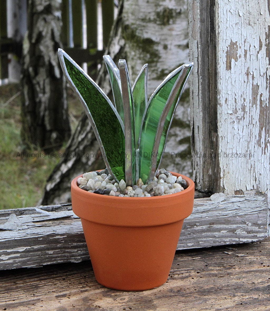 Witraż - Sukulent w doniczce
